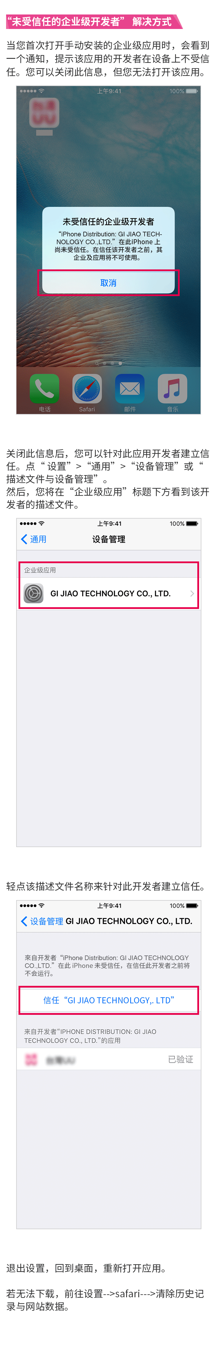 步骤三 设置 > 通用 > 设备管理 / 描述文件与设备管理 > 信任 "GI JIAO..."